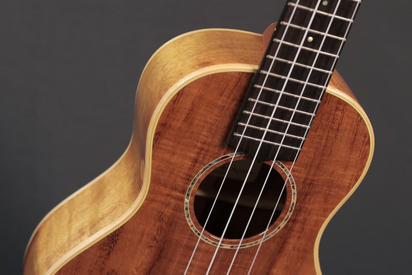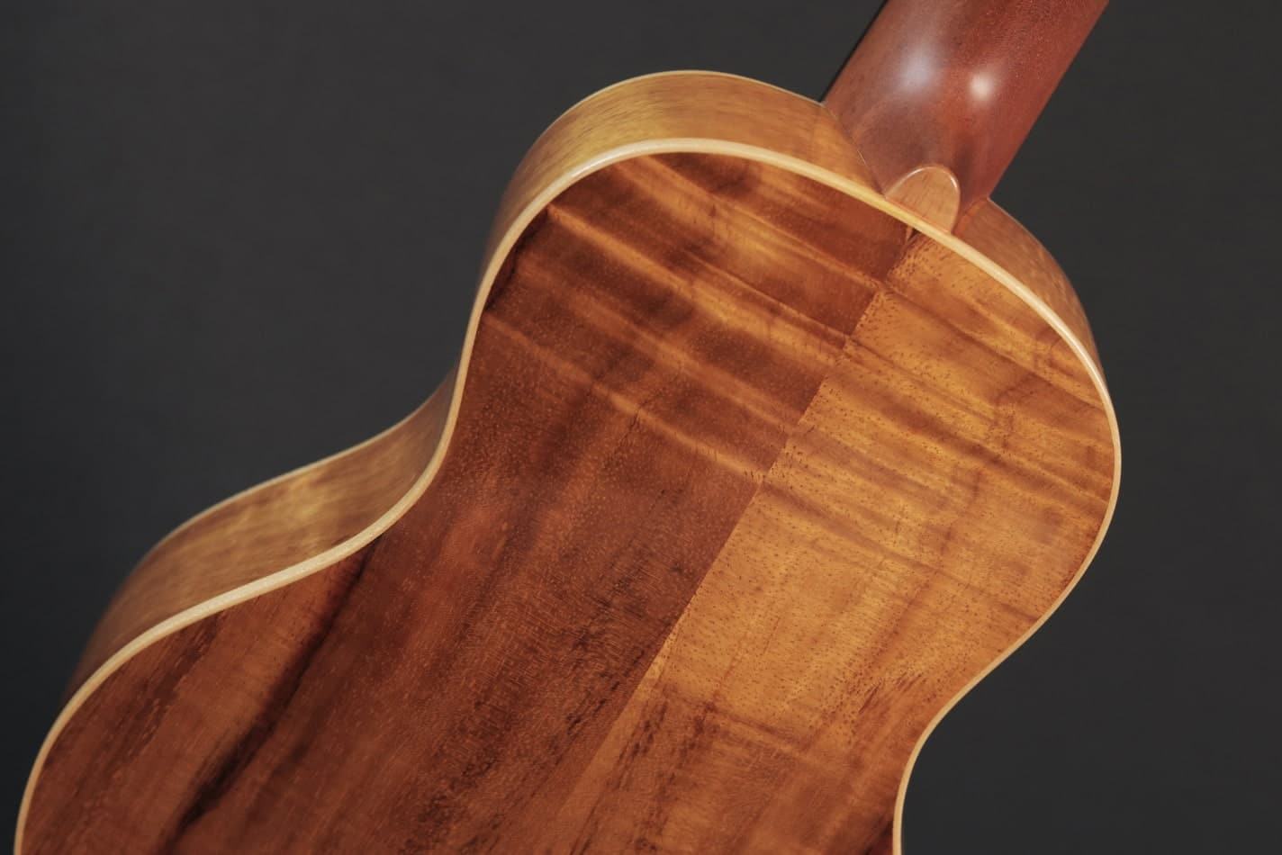 採用全 3A 級夏威夷相思木打造面板與側背板,木紋細緻優雅,琴頭鐳雕小太陽圖騰,展現自然溫暖的視覺意象。