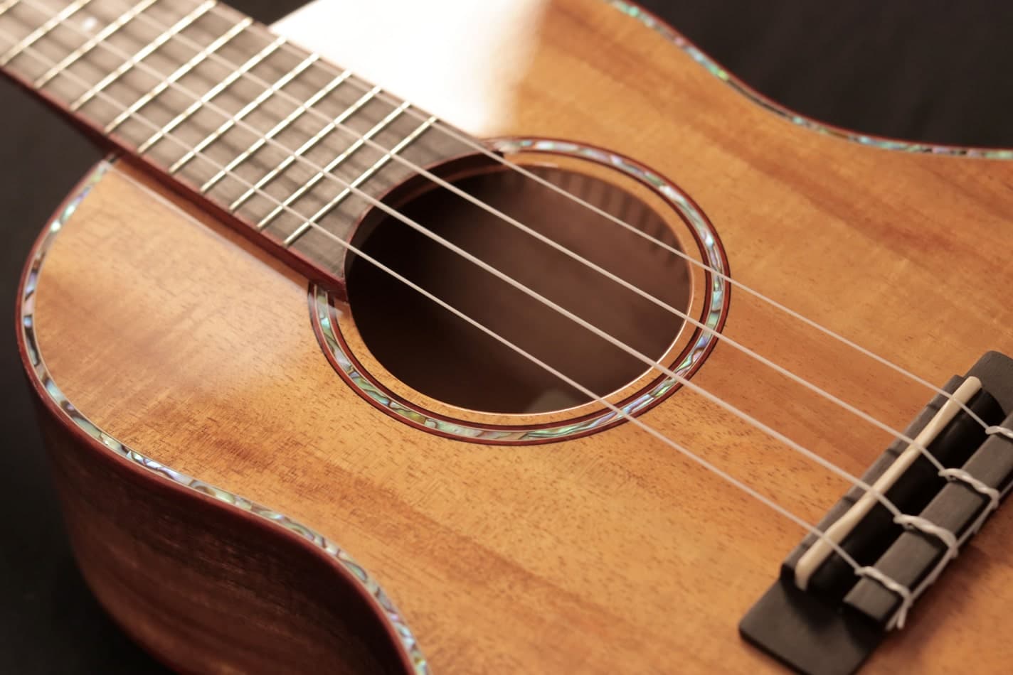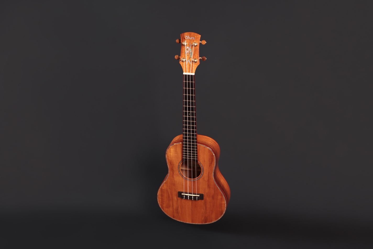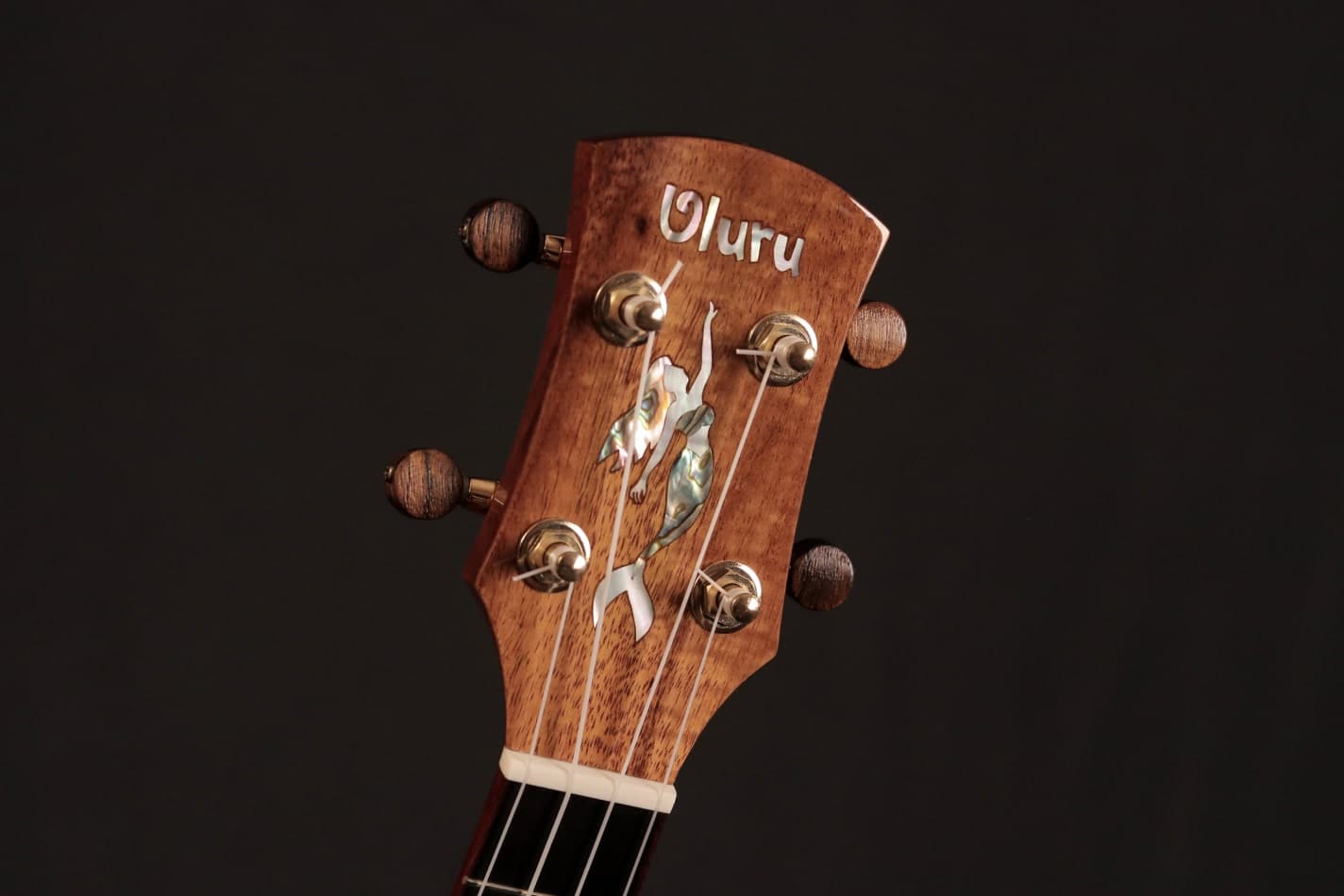 Soprano(21 吋)NT$39,000|Concert(23 吋)NT$42000採用全 3A 級夏威夷相思木打造面板與側背板,琴頭鑲嵌人魚貝殼圖騰,展現優雅靈動的海洋意象與細緻木紋流動之美。音色溫潤圓滑,中頻富有彈性與層次,泛音清亮靈敏,適合旋律表現與情感詮釋。